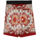Short pour homme de marque Sixth June. Imprimé dans un style baroque à l'avant et à l'arrière. Tissu au toucher satiné, taille élastique avec cordon de serrage, poches à l'avant, poche à l'arrière. Coupe décontractée. Modèle rouge.