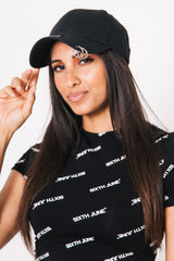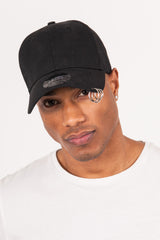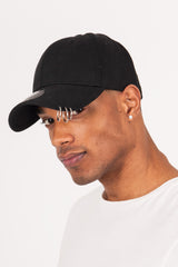 Casquette Sixth June pour homme et femme, avec 3 boucles accrochées à la visière. Attache snapback à l'arrière et visière courbée. Modèle noir avec boucle argenté.