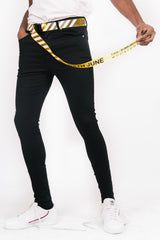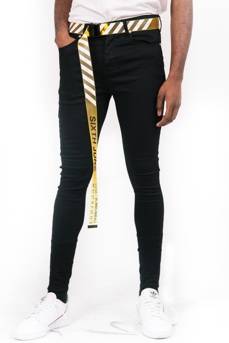 Ceinture mixte Sixth June x Bumbumbag en plastique translucide. 1,60m (5'3") de longueur, couture décorative rouge sur toute la longueur, fermoir à pattes coulissantes, inscriptions "Sixth June"," Collab/ BUMBUMBAG" et coordonnés géographiques inscrustées. Modèle jaune.