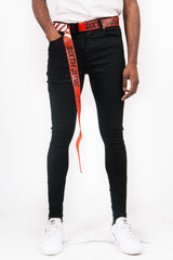 Ceinture mixte Sixth June x Bumbumbag en plastique translucide. 1,60m (5'3") de longueur, couture décorative rouge sur toute la longueur, fermoir à pattes coulissantes, inscriptions "Sixth June"," Collab/ BUMBUMBAG" et coordonnés géographiques inscrustées. Modèle rouge.