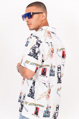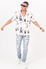 Chemise Sixth June pour homme avec imprimés divers en all-over. Coupe classique, fermeture boutonnée, col cassé (encolure large) et poche avant. Modèle blanc.