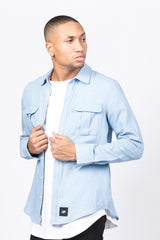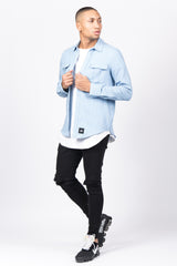 Chemise Sixth June homme avec des poches cargo au niveau de la poitrine. Coupe classique. Modèle bleu clair.
