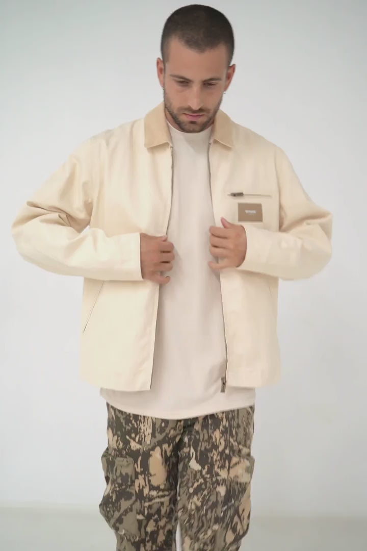 Poche poitrine avec fermeture, poches à l'avant, pattes de serrage aux poignets, logo patch au niveau de la poitrine et à l'arrière.