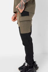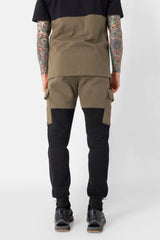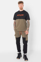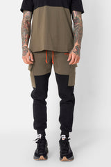 Taille élastique avec cordons de serrage orange, empiècements bicolores, logo brodé orange à l'avant.