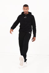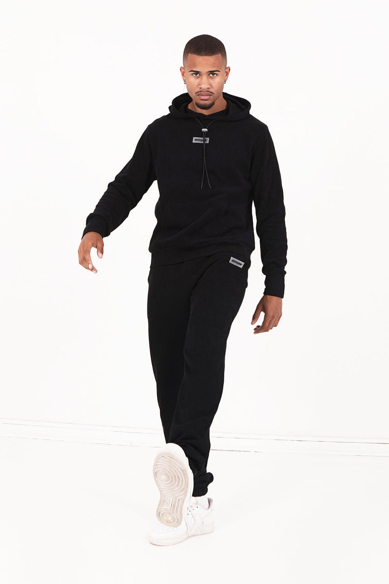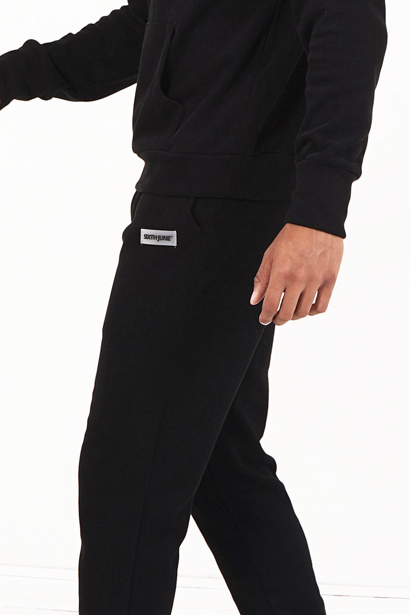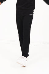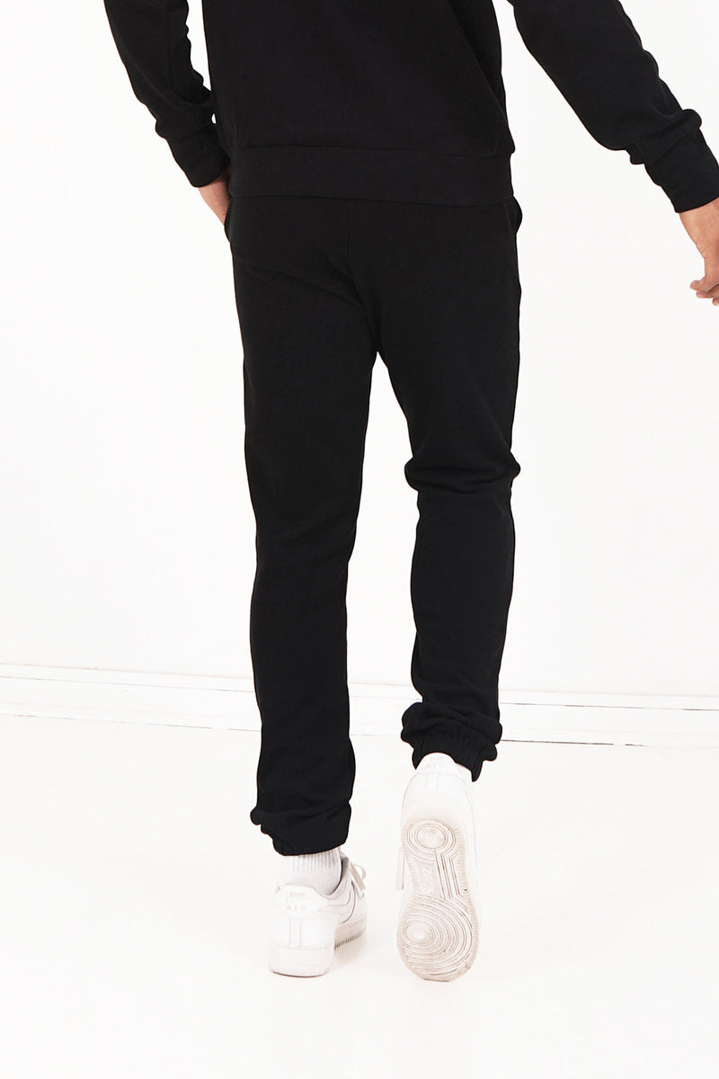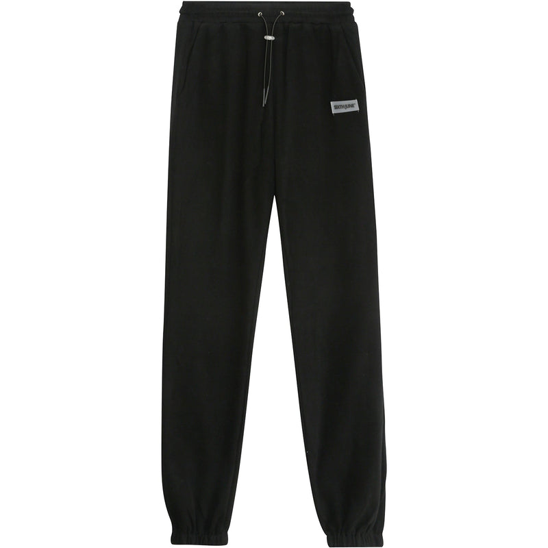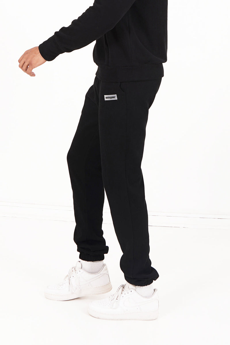 Logo inscrit sur un patch en silicone à l'avant, poches à l'avant et fausses poches à l'arrière, élastiques aux chevilles.