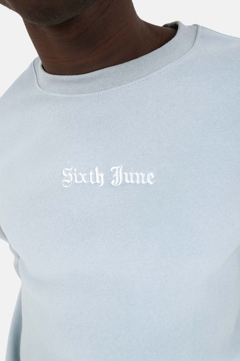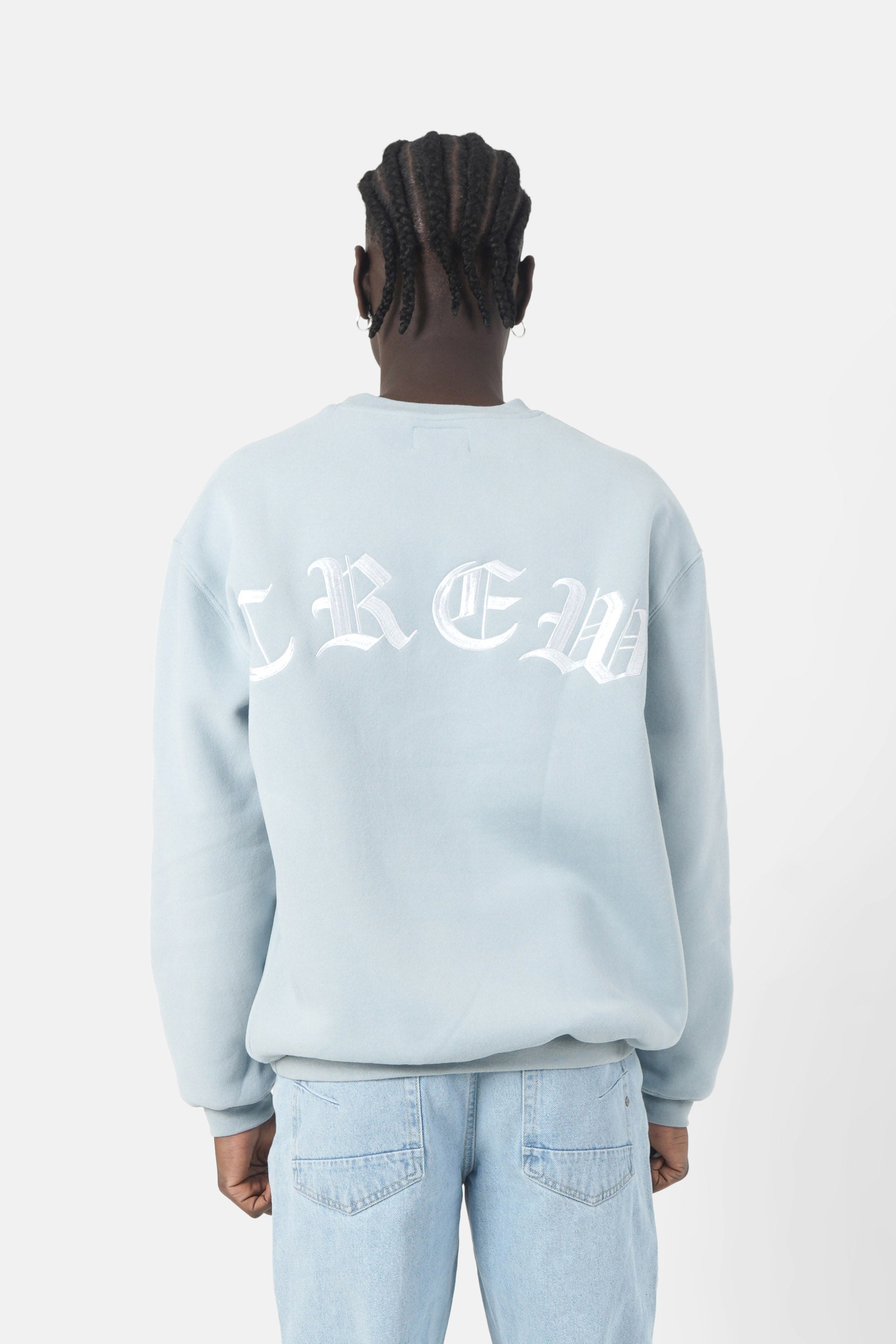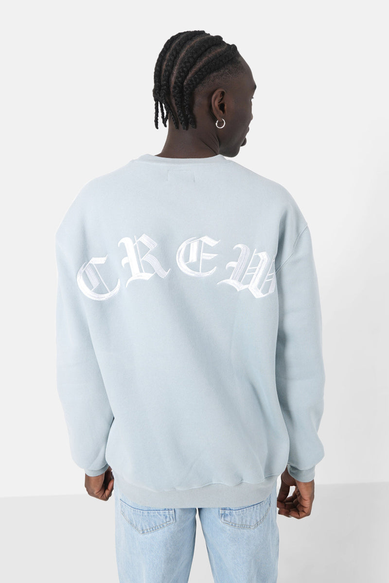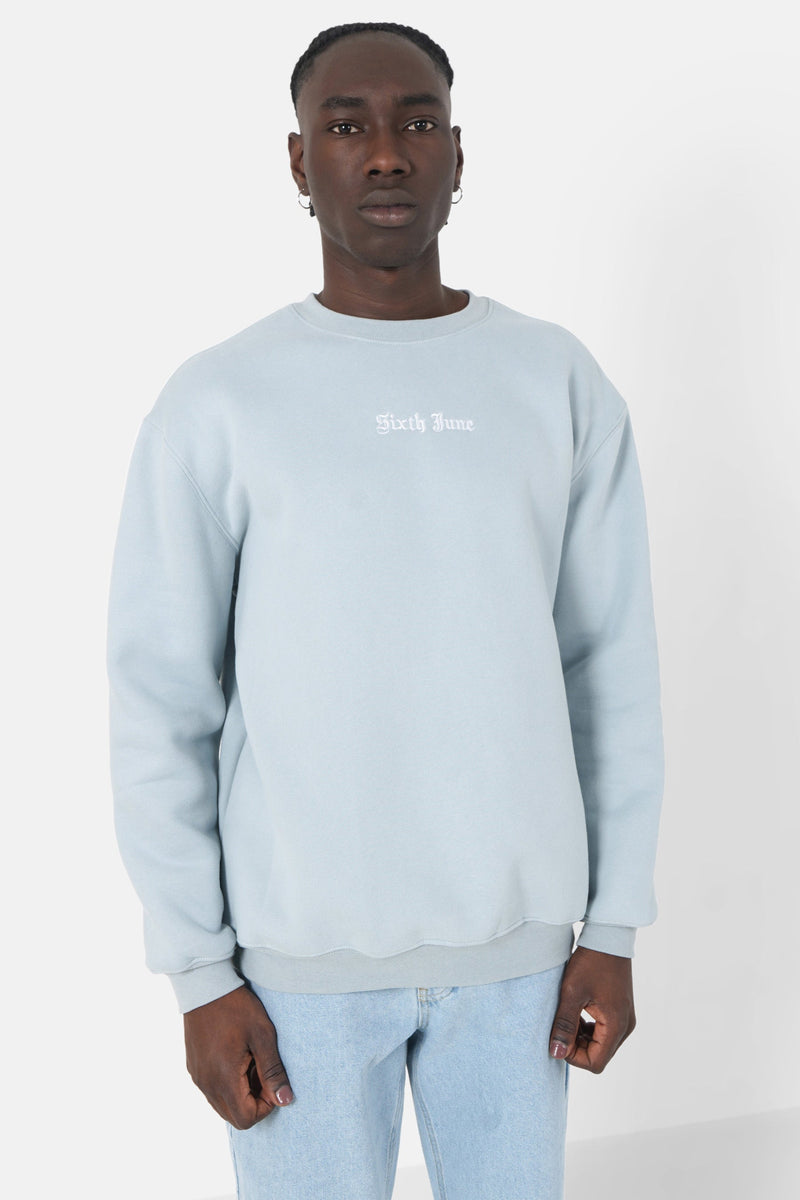 Sweatshirt broderies crew oversize Bleu clair