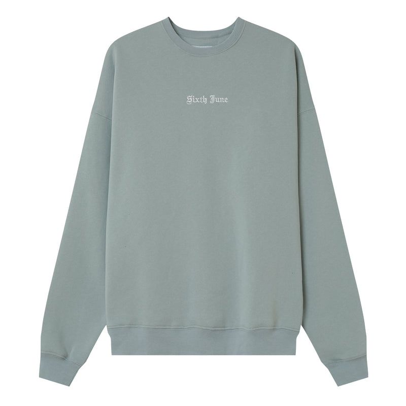 Broderies dans un style gothique à l'avant: SIXTH JUNE et à l'arrière: crew.