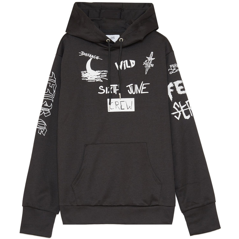 Inscriptions et motifs à l'avant et à l'arrière (crew, wild, Sixth June). Poche kangourou, capuche avec cordons de serrage.