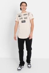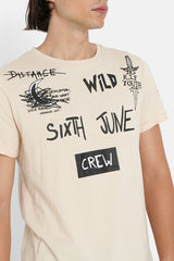 Inscriptions et motifs à l'avant (crew, wild, Sixth June), inscription "CREW" à l'arrière, base arrondie, col rond.