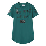 Inscriptions et motifs à l'avant (crew, wild, Sixth June), inscription "CREW" à l'arrière, base arrondie, col rond.