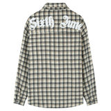 Tissu doux à carreaux, Sixth June en patch bouclette au dos. Fermeture central à boutons.