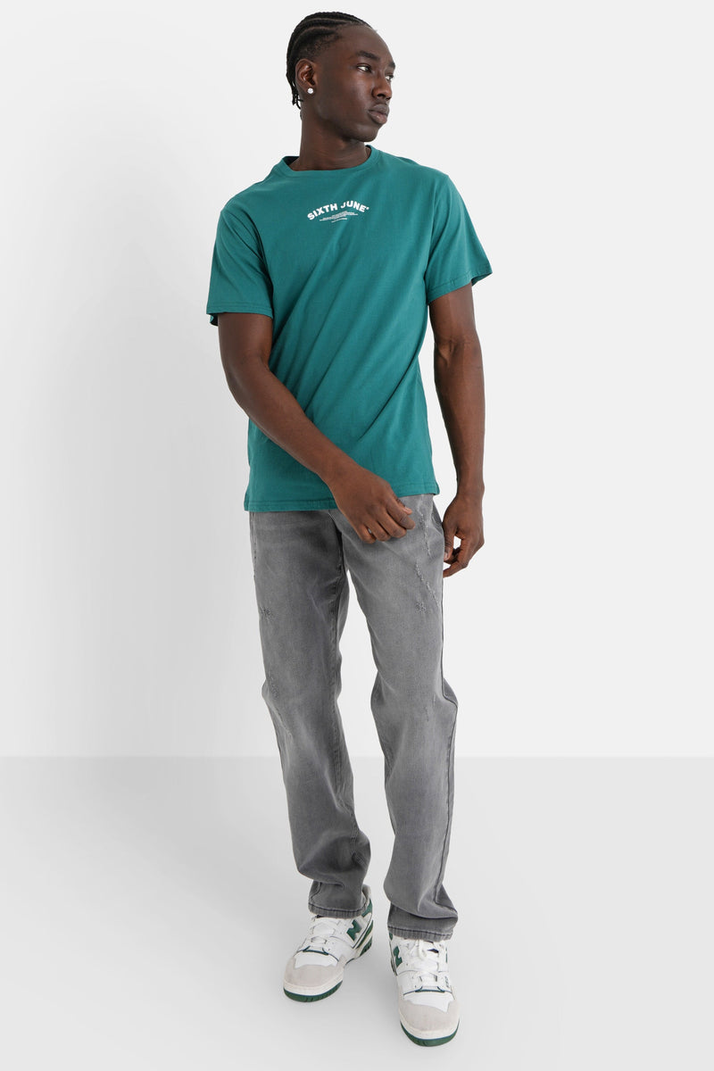 T-shirt logo incurvé avant arrière Vert foncé
