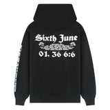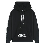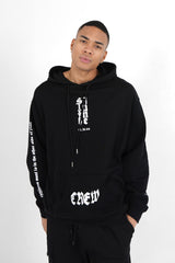 Textes et logo imprimés en caractères gothiques à l'avant, à l'arrière et le long des manches. Capuche avec cordons de serrage, poche kangourou, poignets côtelés.
