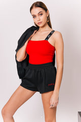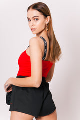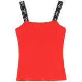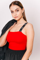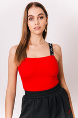 Débardeur Sixth June pour femme avec logo "Sixth June" signature imprimé le long des bretelles. Coupe moulante. Modèle rouge.