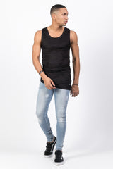 Débardeur homme Sixth June avec une matière suédine, un petit logo ton sur ton brodé à l'avant, une coupe moulante et asymétrique. Modèle noir.