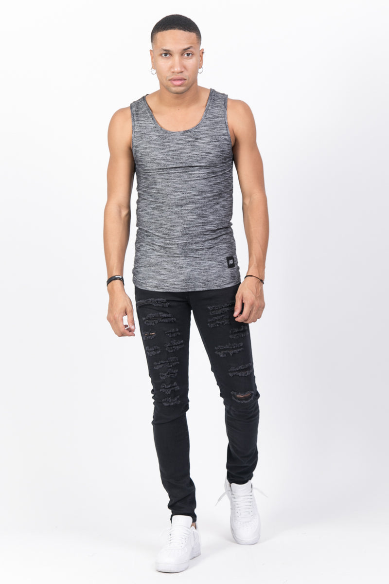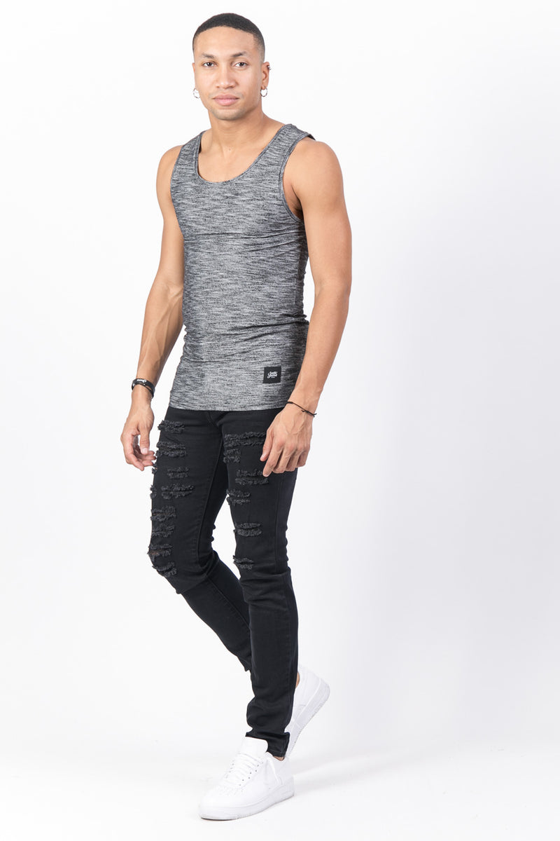 Débardeur homme Sixth June avec une matière texturée et une coupe moulante. Modèle noir.