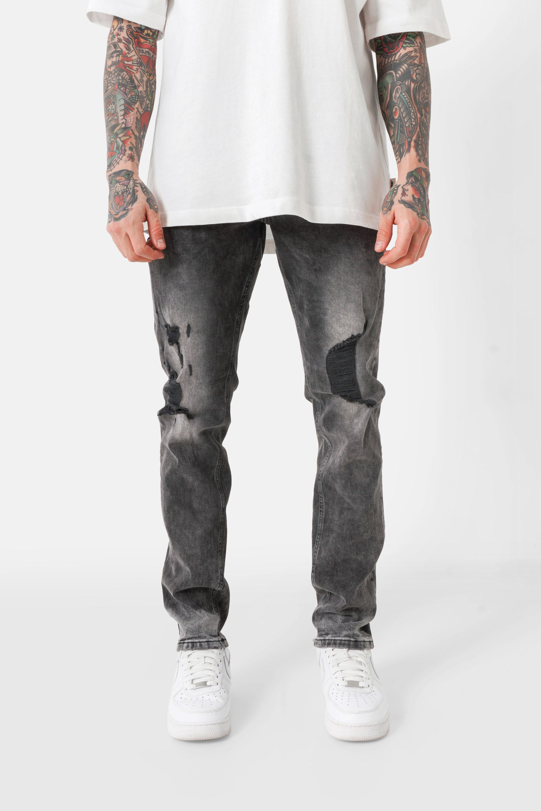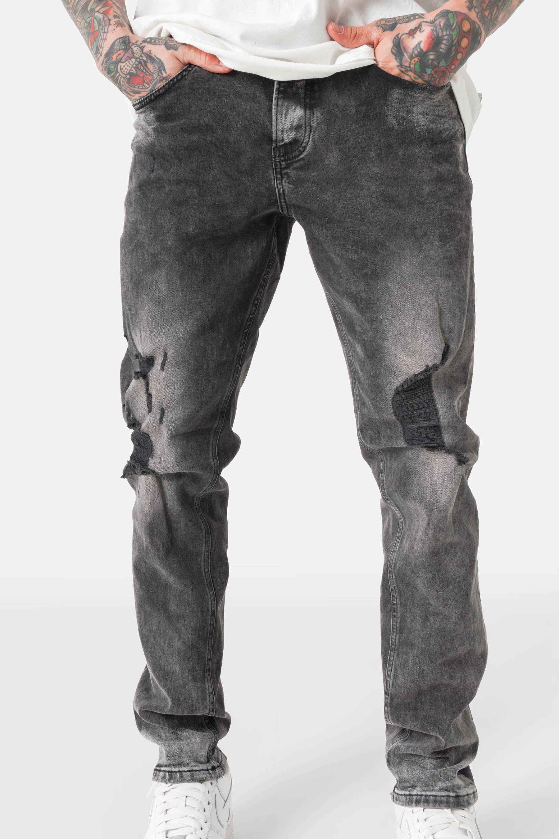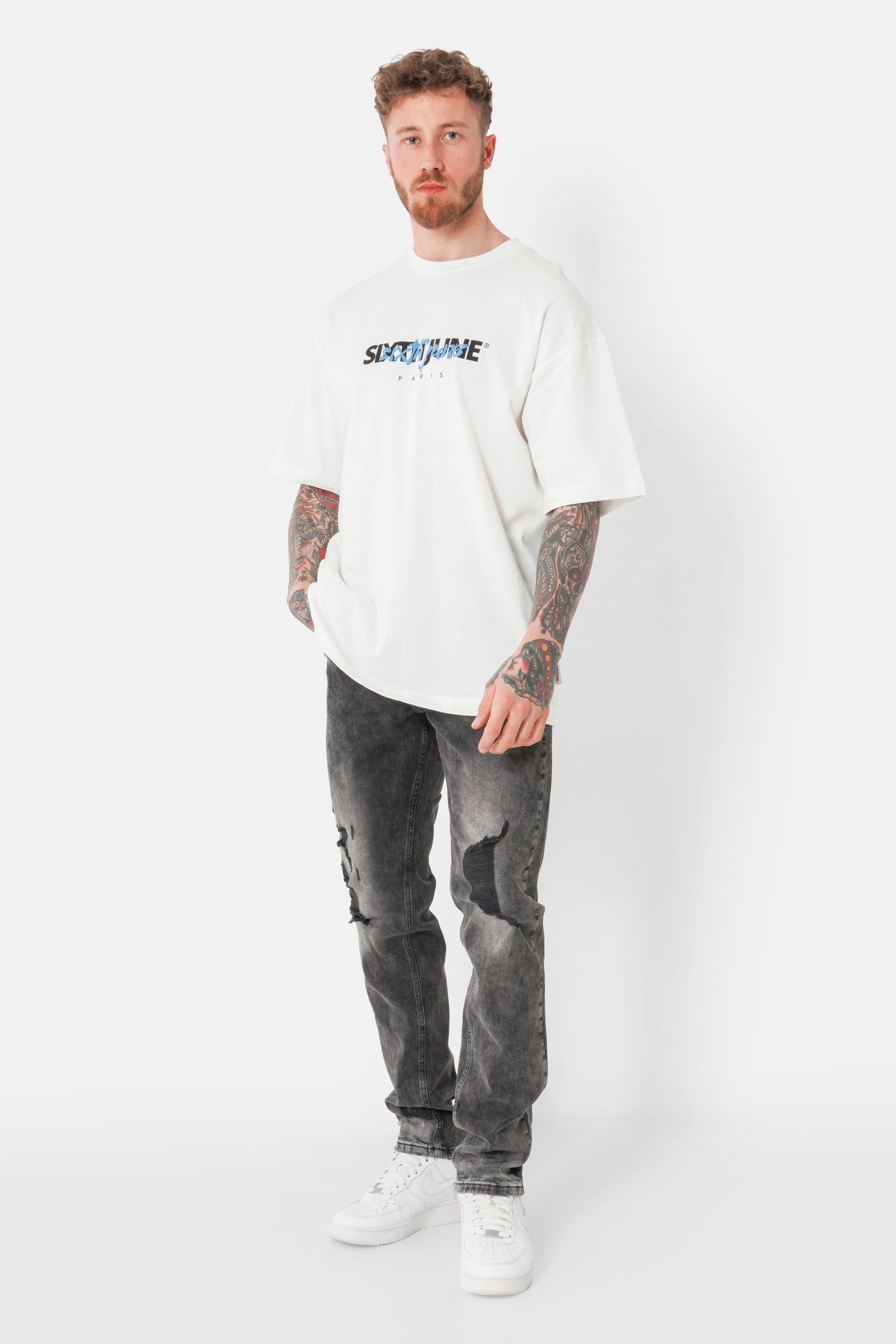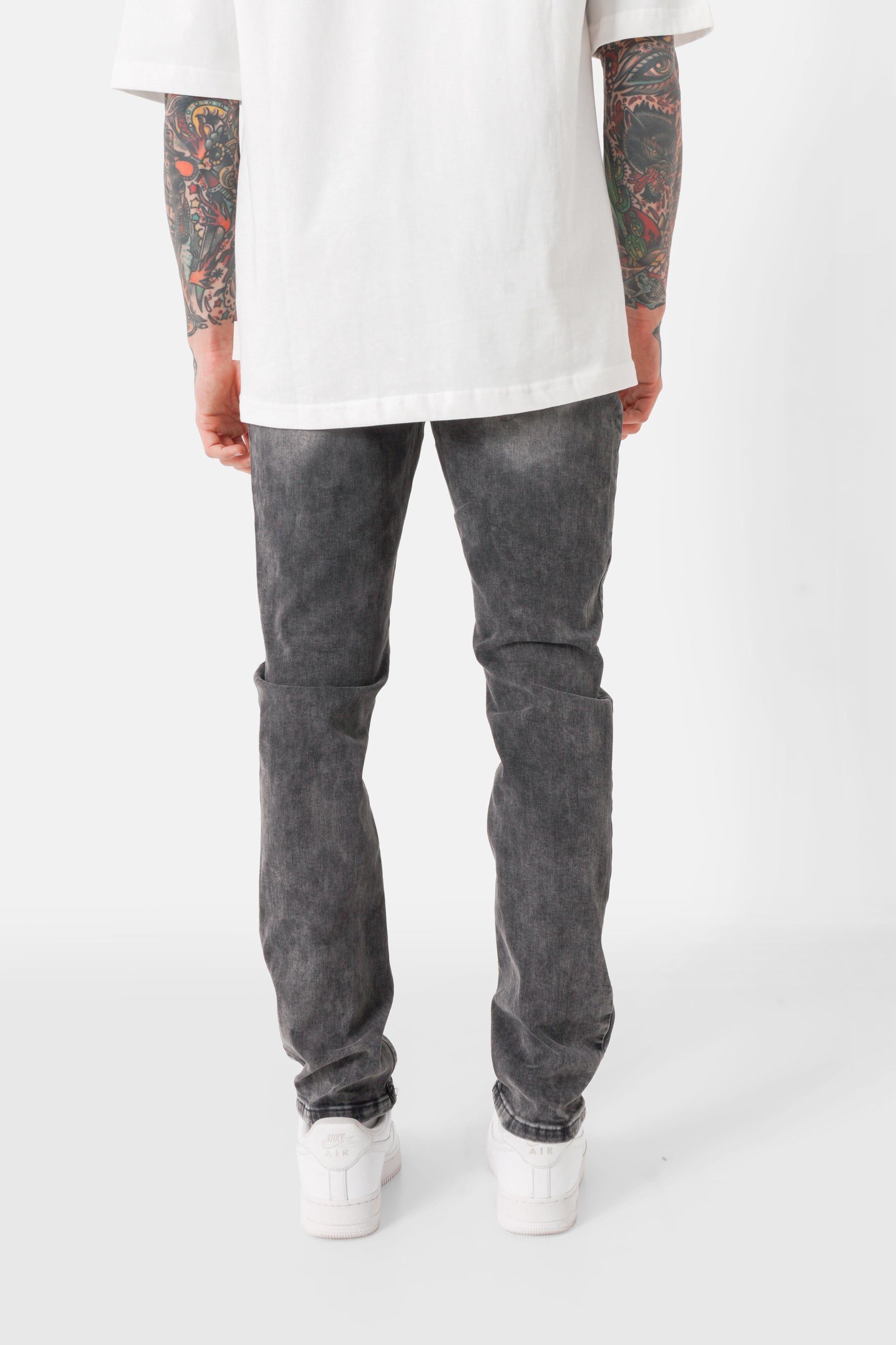 Tissu délavé, poches à l'avant et à l'arrière, fermeture boutonnée.
