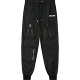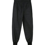 Taille élastique avec cordon de serrage, bords côtes aux cheville, poches à l'arrière.