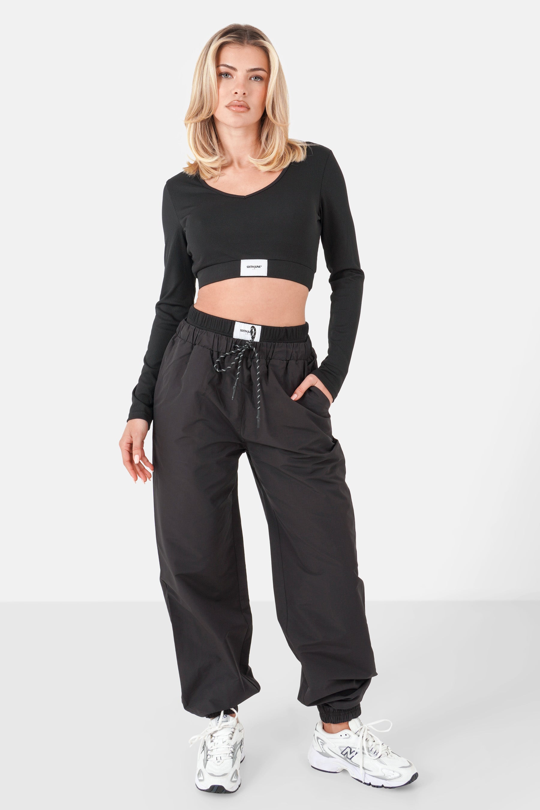 Poches latérales, taille élastique avec cordons de serrage, élastique aux chevilles.