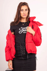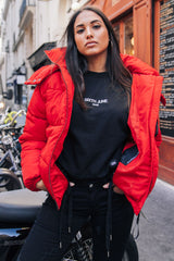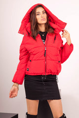Doudoune courte capuche rouge