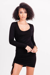 Robe froncée encolure sexy Noir