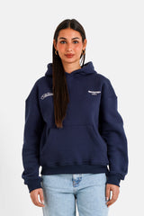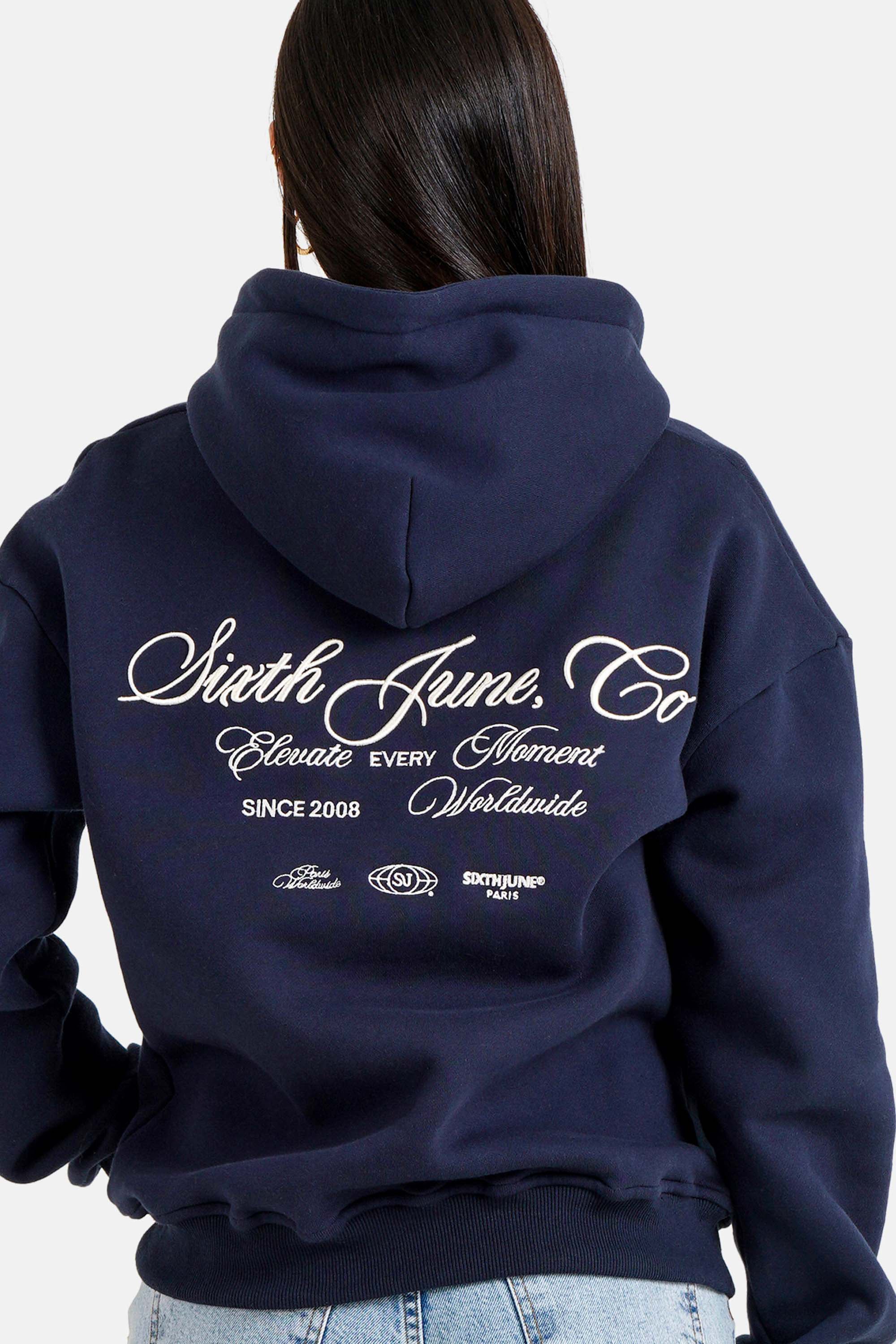 Broderies à l'avant également au niveau de la poitrine, poche kangourou, bords-côtes à la base et aux poignets.