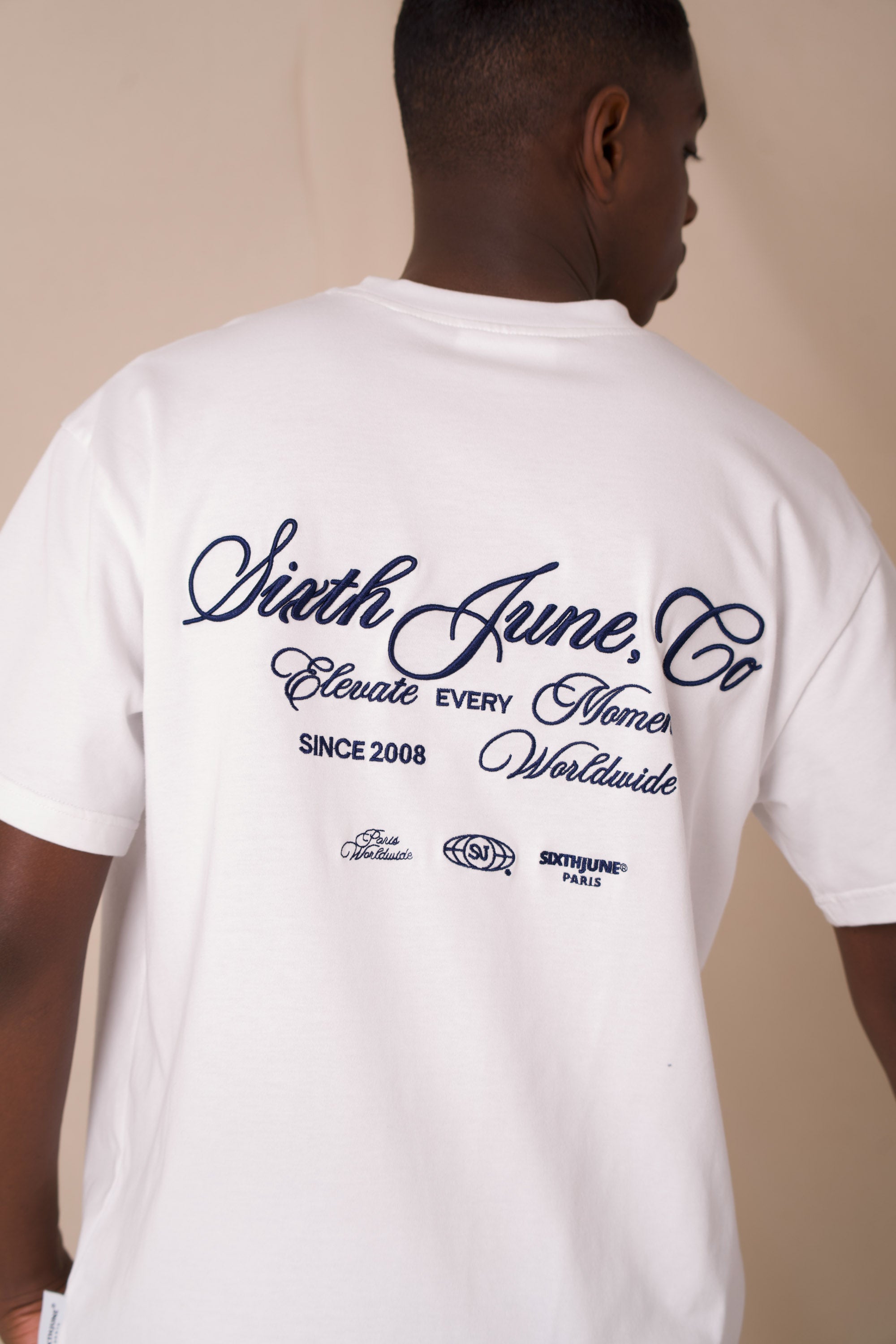 Broderie à l'arrière avec logo et texte: elevate every moment.