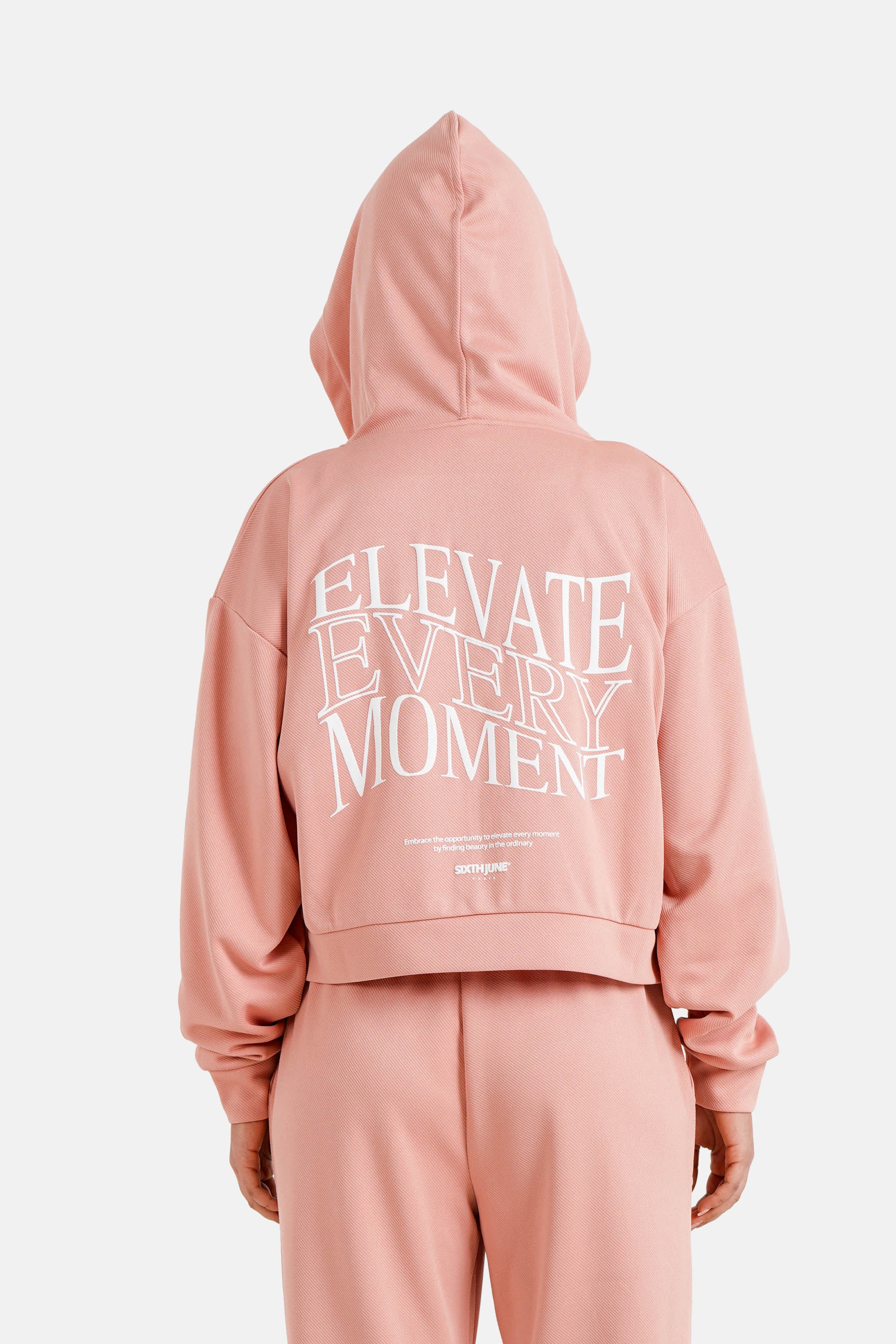 Texte : "ELEVATE EVERY MOMENT" en grand à l'arrière.