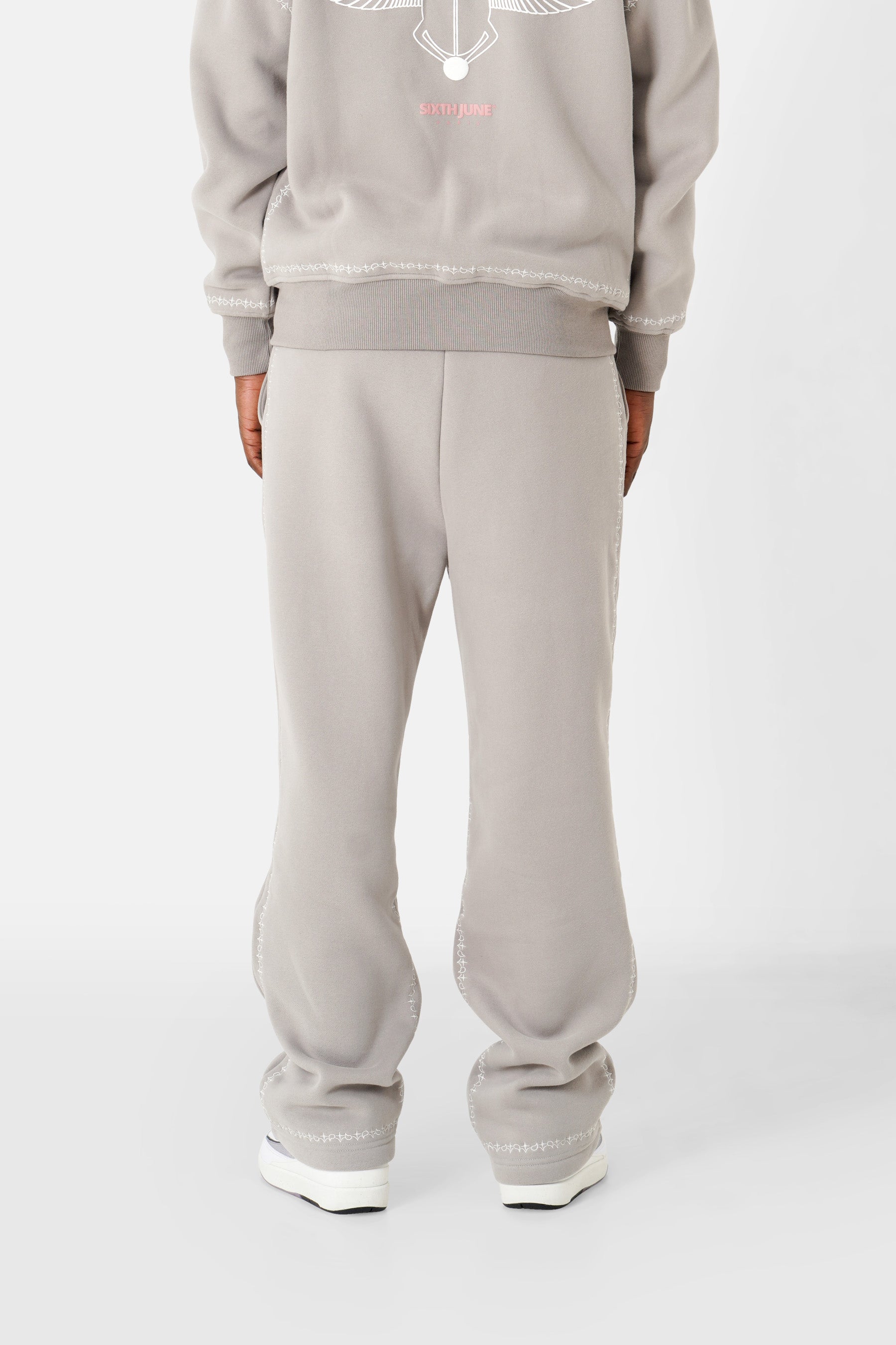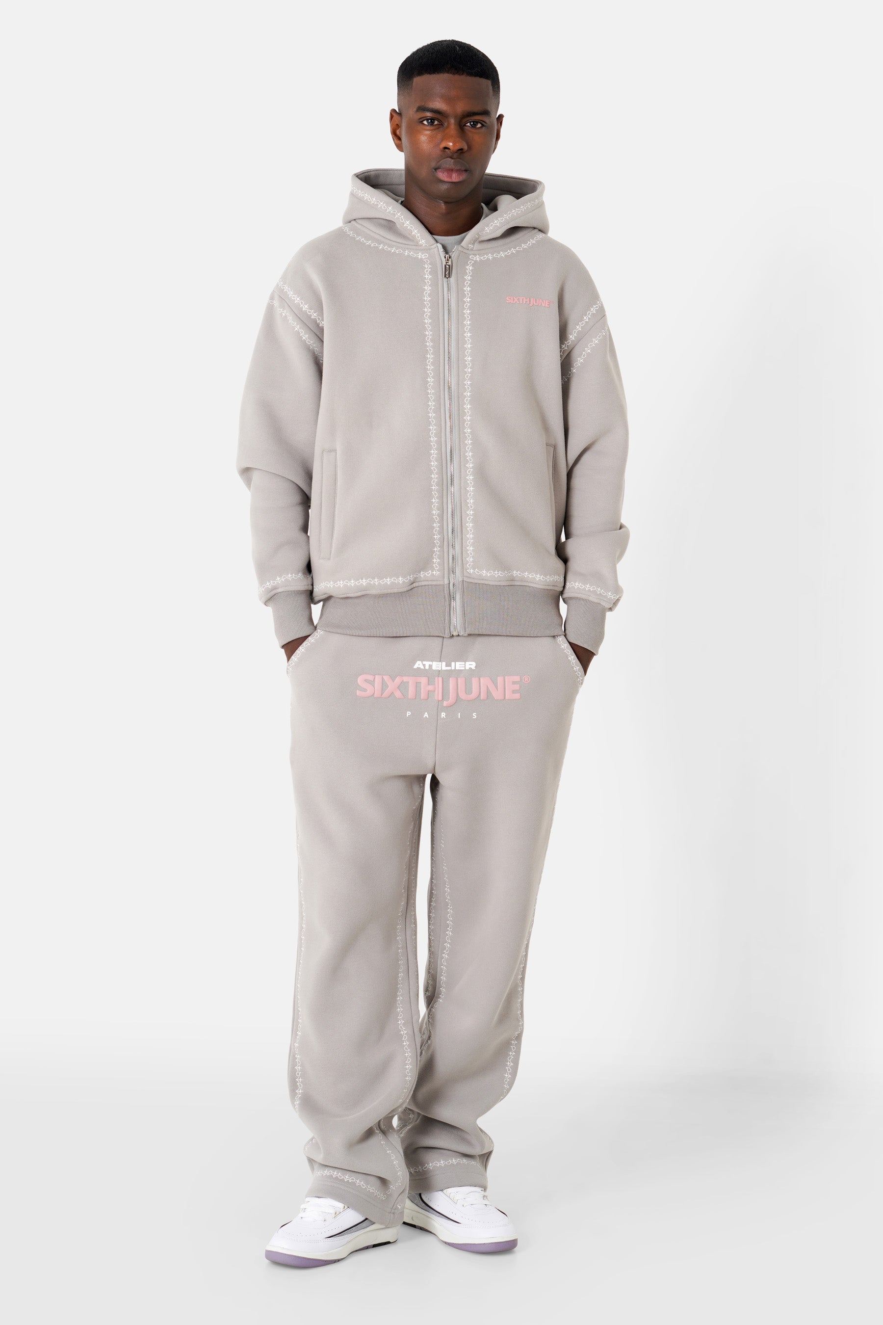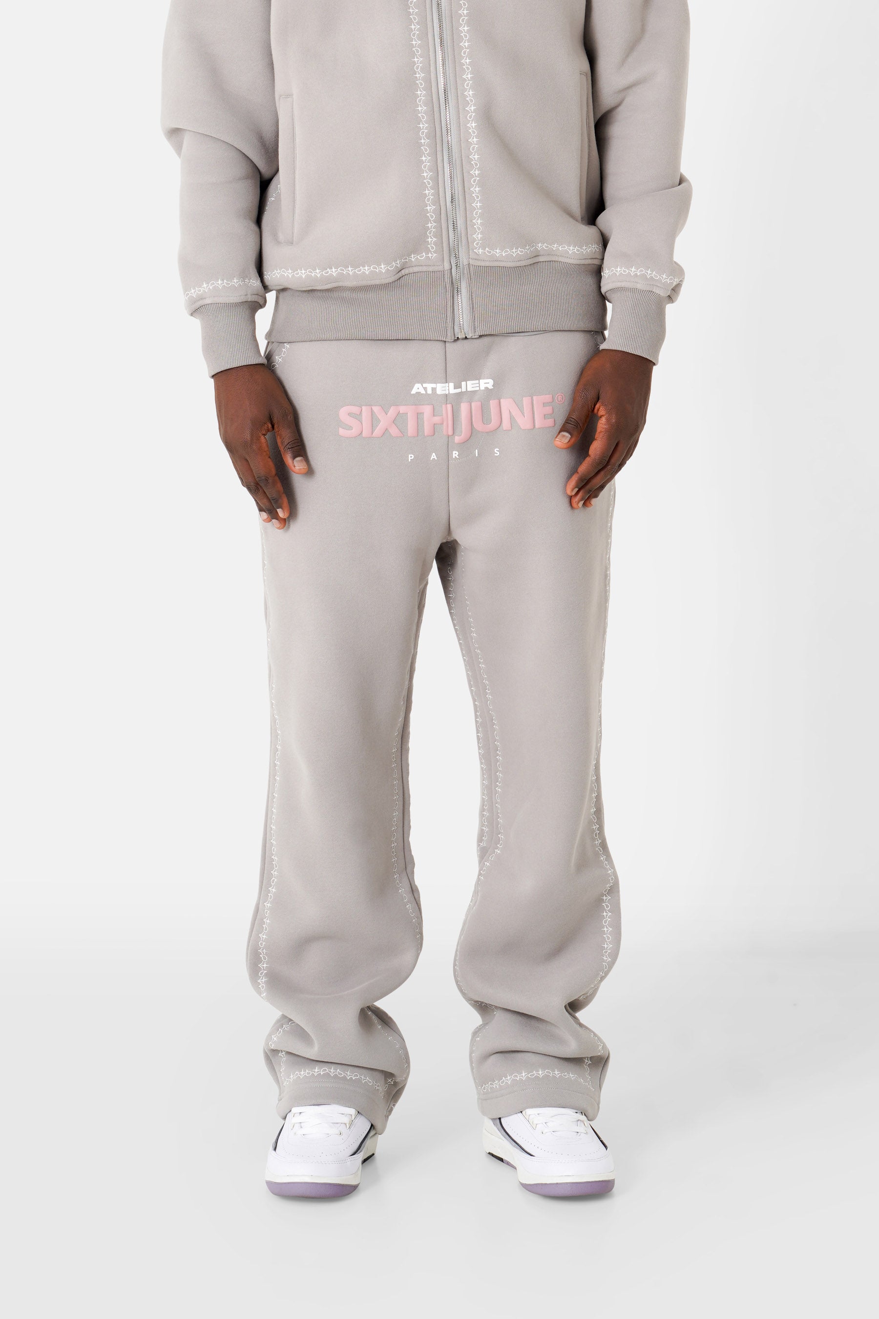 Broderie le long des coutures, taille élastique, poches latérales, tissu épais.