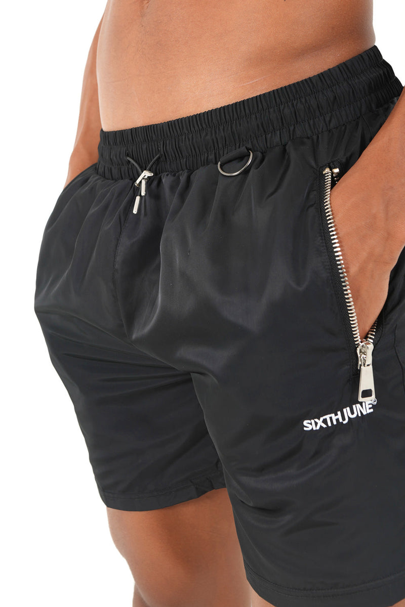 Logo bordé à l'avant en bas de la poche, côté gauche. Poches à l'avant avec fermeture à zip, taille élastique avec cordon de serrage, poches à l'arrière.