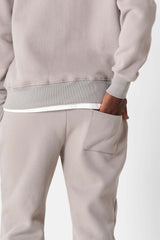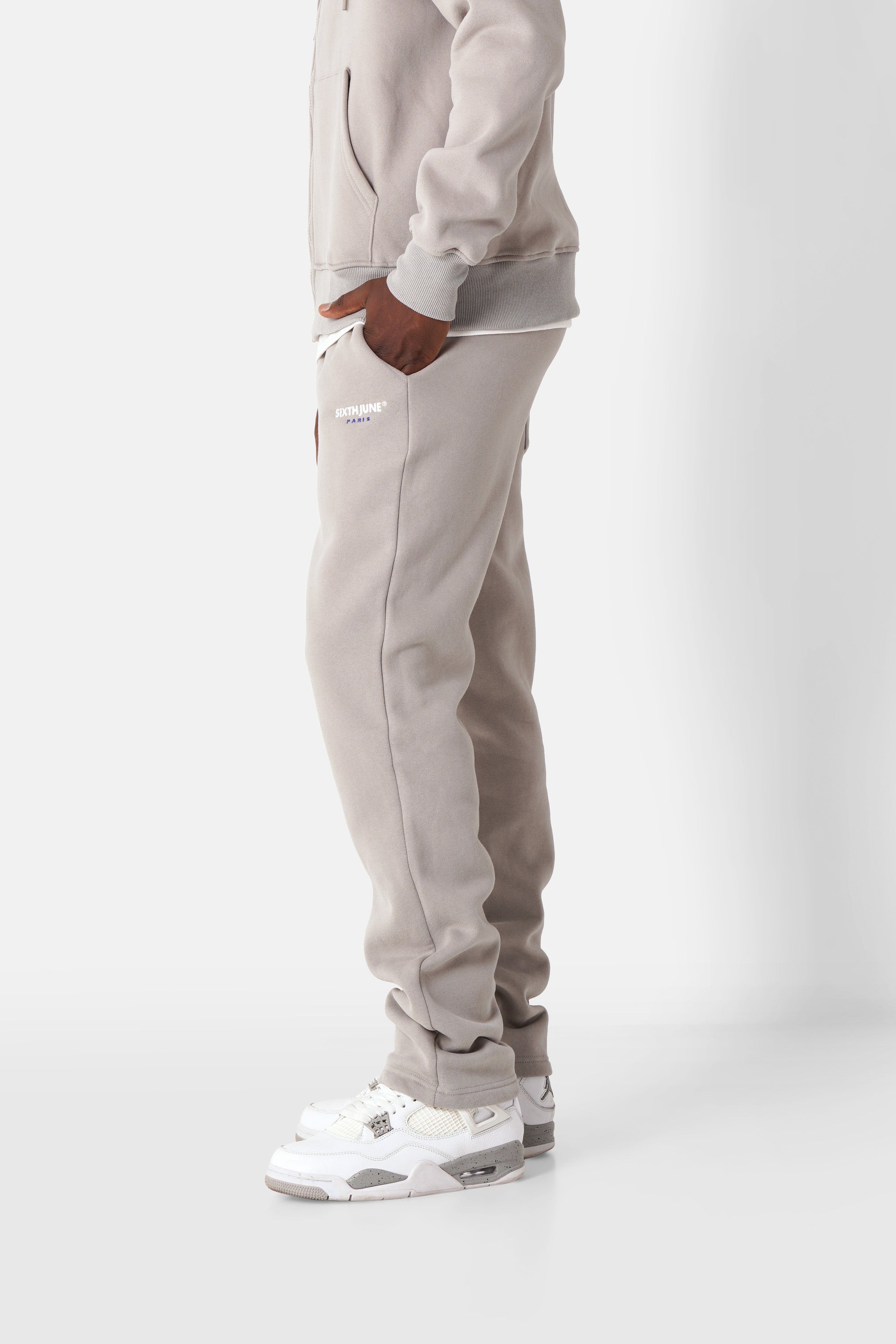 Tissu épais, molletonnée, Sixth June Paris brodé blanc et bleu sur le haut de la jambe gauche.