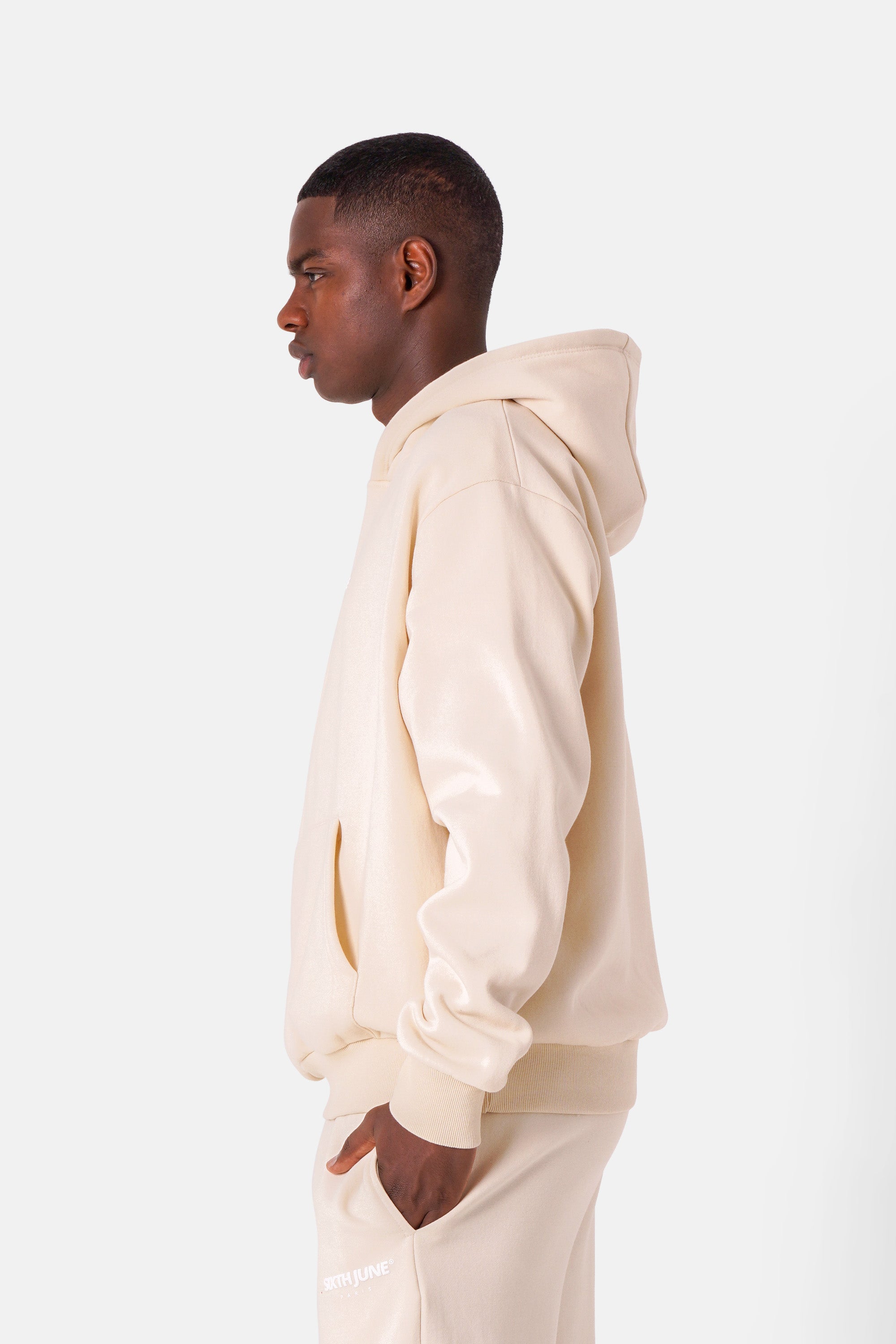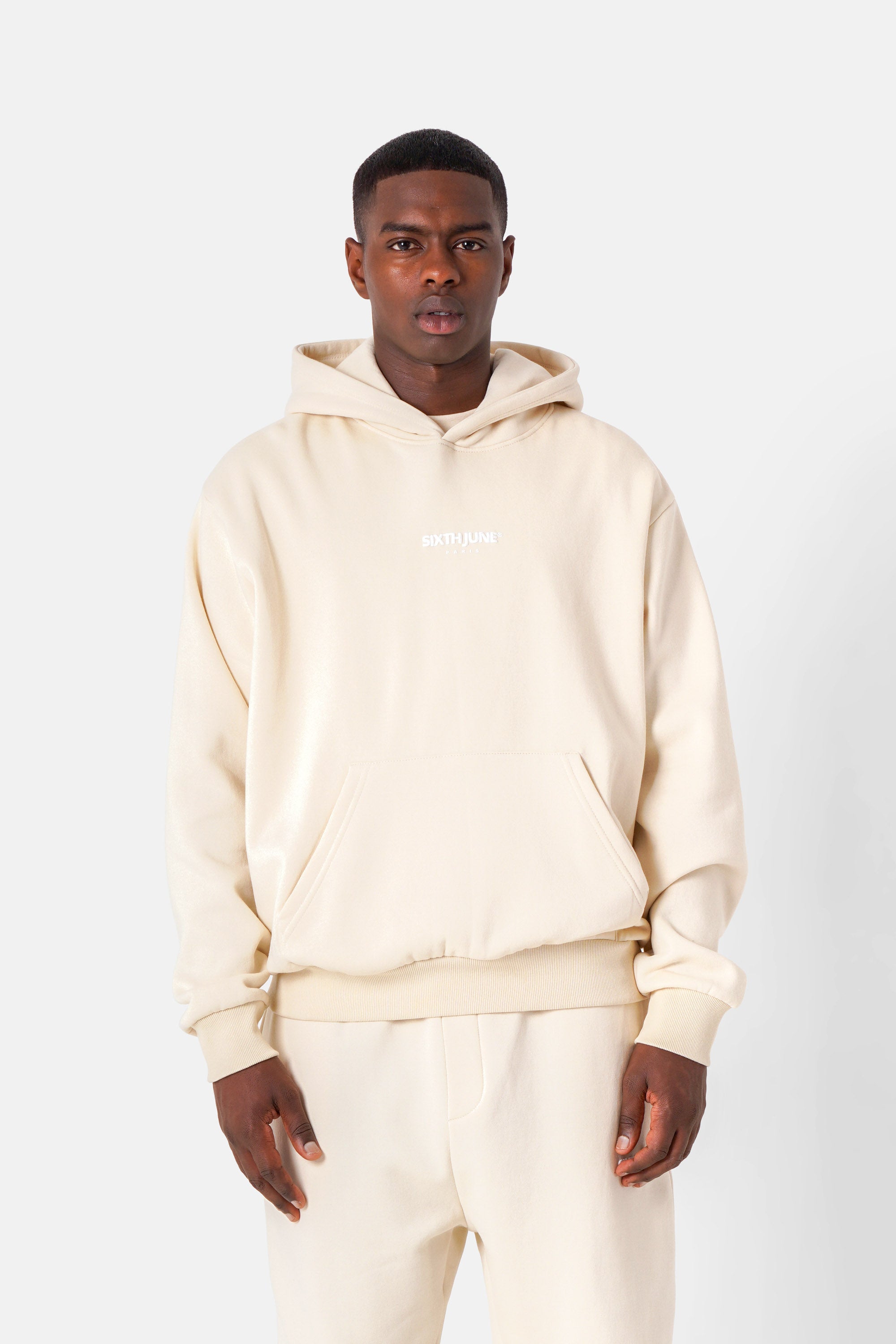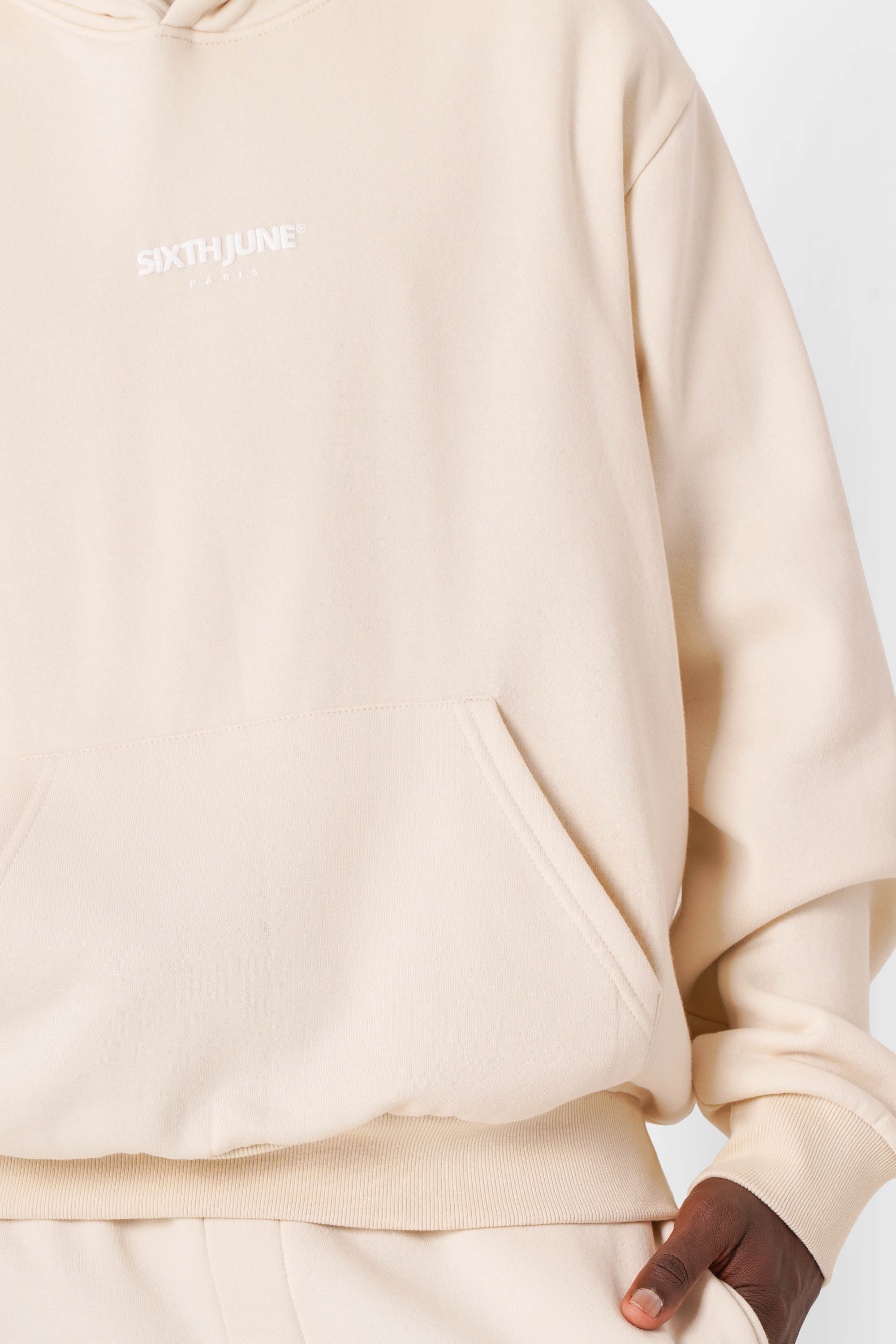 Matière douce et épaisse, molletonnée à l'intérieur, poches kangourou, bords-côtes aux poignets et à la taille.