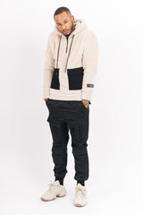 Sweat à capuche pour homme de marque Sixth June. Matière duveteuse, douce et chaude. Poches cargo avec fermeture à scratch à l'avant, col avec ouverture à zip, capuche avec cordons de serrage. Coupe large. Modèle beige.