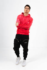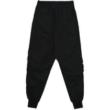 Taille élastique avec cordon de serrage, bords-côtes aux chevilles, poches avant et arrière.