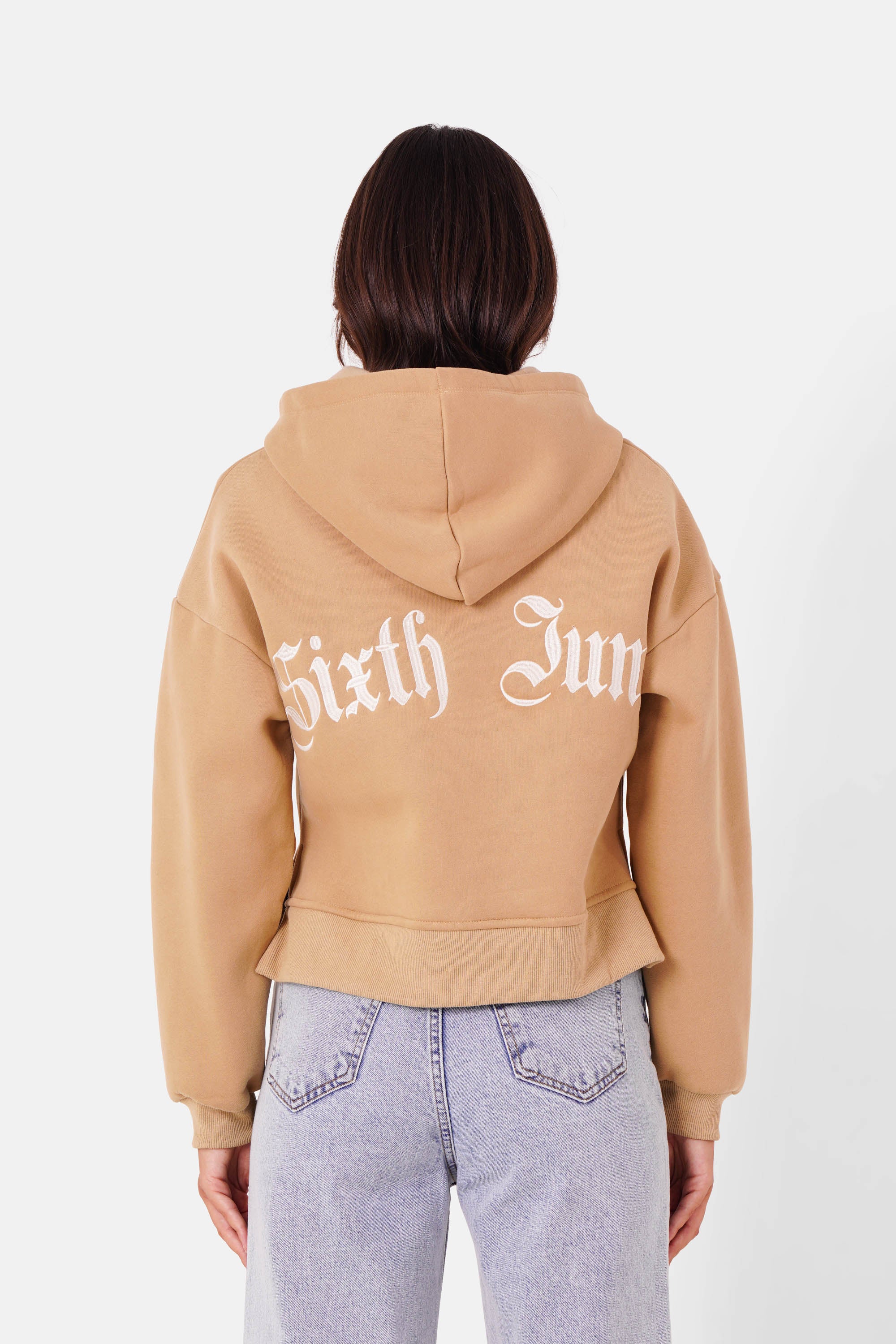 Logo Sixth June brodé en grand, au dos et en caractère gothique, même logo brodé en plus petit à l'avant au niveau de la poitrine.