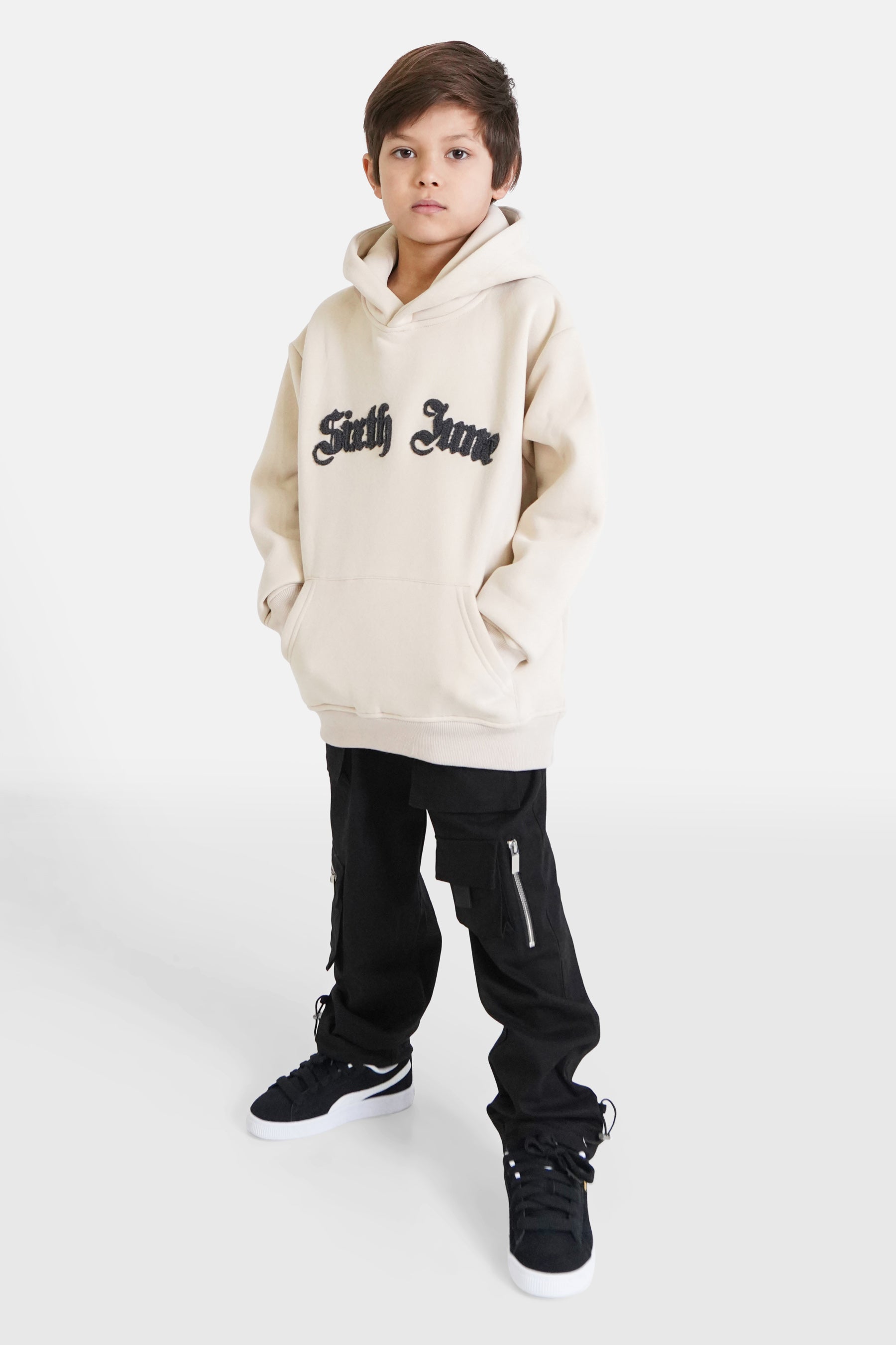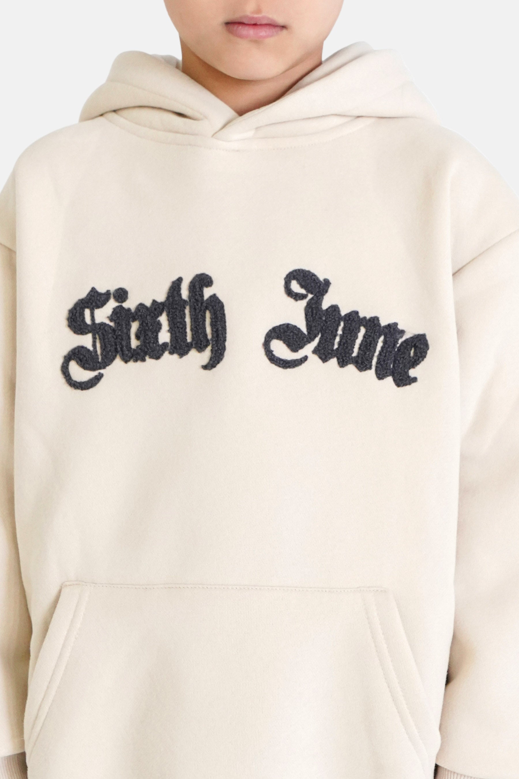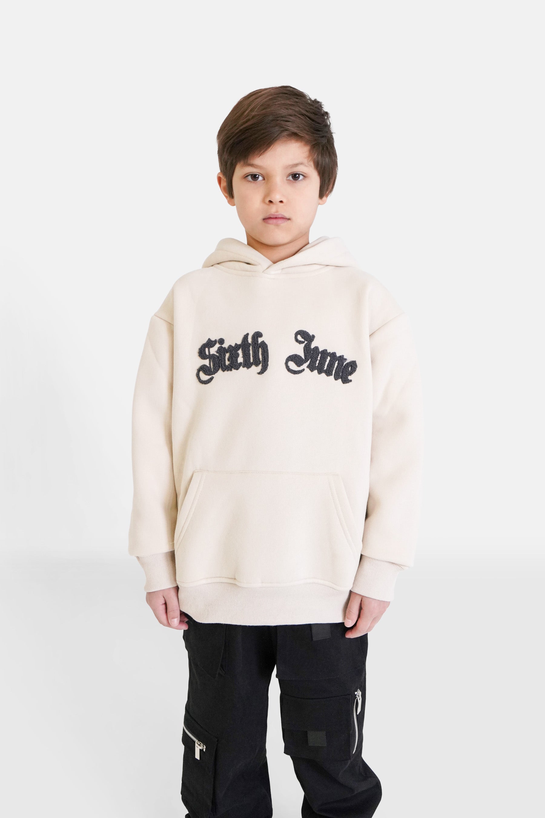Logo esprit gothique tissé à l'avant en grands façon bouclette, élastique côtelé à la base et aux poignets.