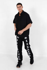 Imprimé Sixth June en lettres gothiques sur la face de chaque jambe.