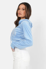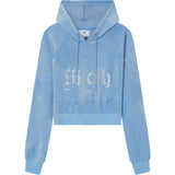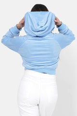 Matière très douce, effet velours, inscription Sixth June en strass et caractère gothique à l'avant. Capuche avec cordons de serrage, poignets et base côtelés.