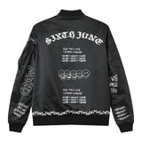Inscriptions et motifs à l'avant et sur les manches (Crew, Sixth June, Skull, Gothic), inscription Sixth June à l'arrière.