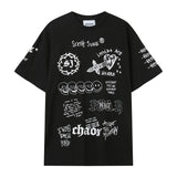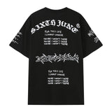 Inscriptions et motifs à l'avant et sur les manches (Crew, Sixth June, Skull, Gothic), inscription Sixth June à l'arrière, col rond.
