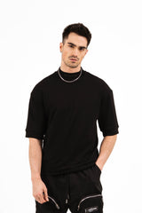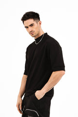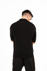 T-shirt pour homme de marque Sixth June. Manches mi-longues, col haut avec logo brodé. Tissu épais, doux et stretch. Coupe classique, épaules tombantes. Modèle noir.