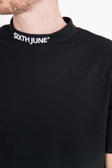 T-shirt à manches courtes pour homme de marque Sixth June. Logo SIXTH JUNE brodé sur le col à l'avant. Patch orange à l'arrière, dans le haut du dos, matière stretch. Coupe classique. Modèle noir.
