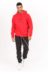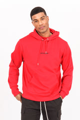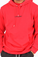 Hoodie pour homme de marque Sixth June. Grand imprimé bandana dans le dos, logo sur la poitrine. Cordons de serrage à la capuche, poche kangourou. Coupe classique. Modèle rouge.