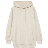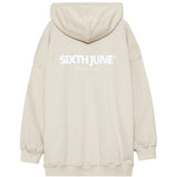 Sweat à capuche pour femme de marque Sixth June. Coupe très large, oversize, peut se porter en robe. Imprimé à l'arrière Sixth June avec textes. Cordon de serrage à la capuche, poche kangourou. Modèle beige.