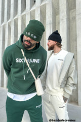 Tissu épais, molletonné, Sixth June Paris brodé en grand sur le torse, capuche avec cordons de serrage.