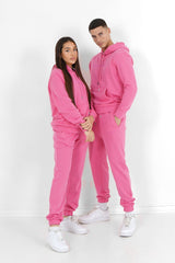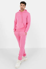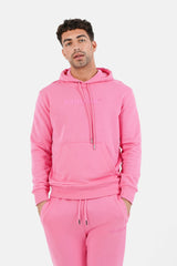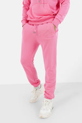 Capuche du sweatshirt avec cordon de serrage, poche kangourou, poignets côtelés, taille du jogging élastique avec cordon de serrage également, poches latérales, élastique aux chevilles.