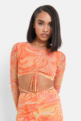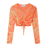 Cordons de serrage sous la poitrine, effet froncé, logo sur patch en gomme au dos près de la nuque.
