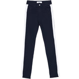 Jean femme Sixth June avec des bandes le long des jambes. Coupe skinny, poches latérales et arrières. Modèle noir avec bandes blanches.
