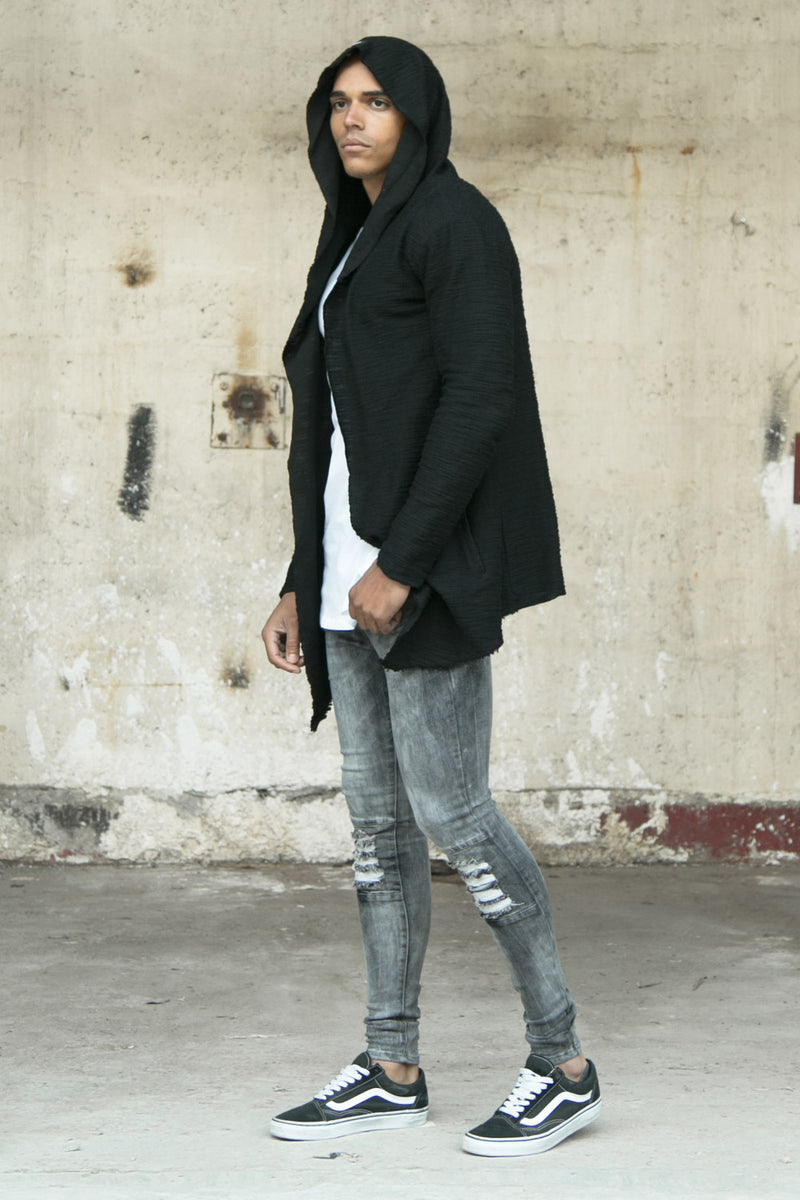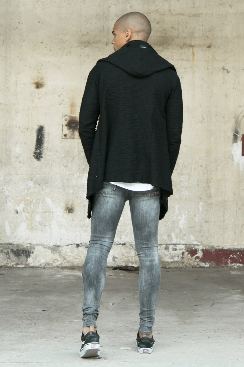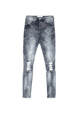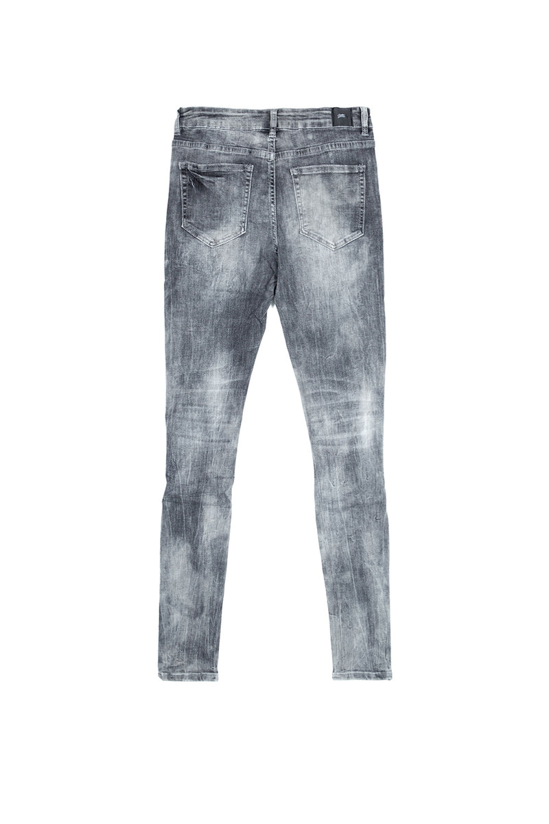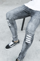 Jean homme Sixth June avec une couture et déchirure au niveau des genoux. Délavage, coupe skinny très près du corps. Modèle gris foncé.