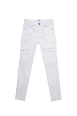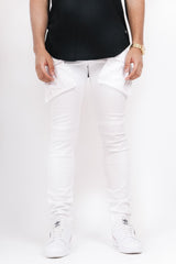 Denim biker Sixth June Men white. Cargo pockets. Slim cut.